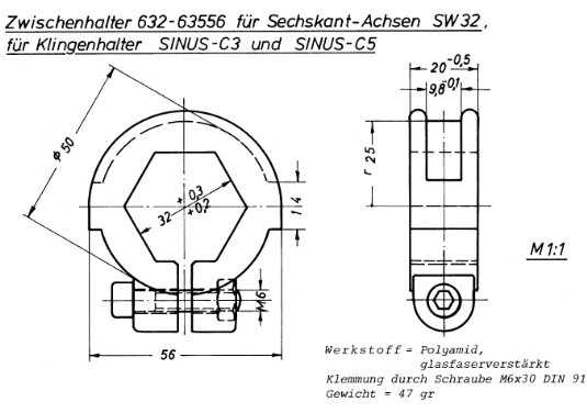 zur Verwendung auf einer handelsüblichen Sechskantachse, SW32.